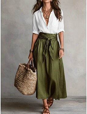 Femmes style grand-mère côtier Basique Occasionnel Longue Midi Jupes Couleur Unie Avec Poches Fendu Quotidien Rue Noir Marron Vert Abricot Printemps & Été Coton Lin
