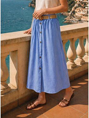 Femmes Jupe de vacances Élégant Mode Occasionnel Maxi Taille Moyenne Jupes Bleu Été