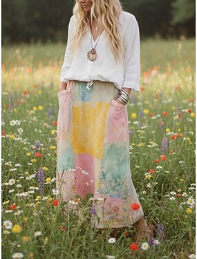 Jupe de vacances pour femme, style bohème vintage, jupe longue décontractée taille mi-haute, imprimé floral, non extensible, idéale au quotidien, vert clair, rose, bleu clair, été