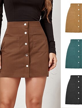 Femmes Mode Occasionnel Mini Taille haute Jupes Uni Avec Poches Non Elastique Quotidien Rue Marron Printemps