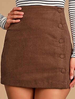 Femmes Élégant Mode Occasionnel Mini Taille haute Jupes Uni Patchwork Non Elastique Micro-Élastique Quotidien Rue Noir Marron Beige Automne