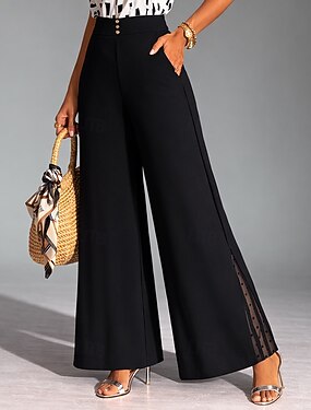 Femmes Pantalons Pantalon décontracté Pantalon d'été Élégant Mode Décontracté Quotidien Longueur cheville Taille haute Couleur Unie Uni Dentelle in in france they say Pontalon wide leg Ceinture