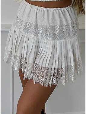Femmes Jupe en dentelle Mode Occasionnel Mini Taille Basse Jupes Dentelle Plissé Micro-Élastique Quotidien Plage Blanc laiteux Été Polyester