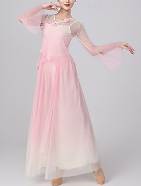 Danse Latine Jupes Couleur unie Épissage Tulle Femmes Performance Entraînement manche longue Haut Polyester