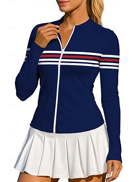 Femmes Rayures T-shirt de sport Chemise de tennis Haut de tennis Sweat-shirt de tennis manche longue Fermeture éclair Floral UPF50+ Résistant aux UV Haute élasticité Évacuation de l'Humidité Respirant