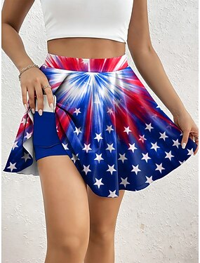 Jour de l'Indépendance Jupe de Tennis Patriote pour Femmes Mode Décontractée Mini Taille Haute Jupes Graphique Élastique Quotidien Plage Bleu Rouge Violet Kaki Été 95% Polyester 5% Élasthanne