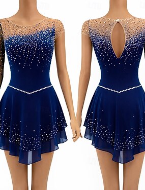Veste polaire de patinage artistique Robe de patinage artistique Femmes Patinage Robe Bleu marine Patchwork Dos Nu Haute Élasticité Entraînement Compétition Tenue de Patinage Classique cristal