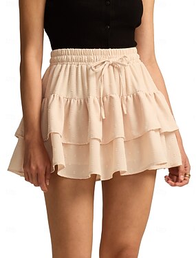 Femmes Jupe de vacances Mode Occasionnel Mini Taille haute Jupes Uni Cordon de serrage A Volants Élastique Quotidien Rue Noir Blanche Rouge Vert Été