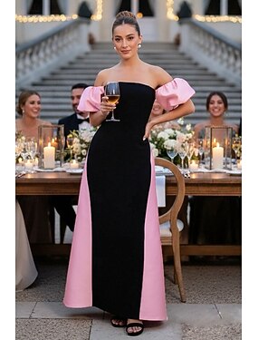 Fourreau Colonne Traîne Balayage Longueur au sol Robe à jupe Robe de Soirée Élégant Sans manches Épaules Dénudées Mariage Formel Satin avec Bloc de Couleur