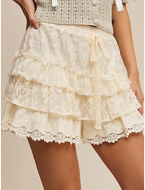 Femmes Jupe en dentelle Mode Occasionnel Mini Taille Basse Jupes Dentelle Plissé Micro-Élastique Quotidien Plage Blanc laiteux Été