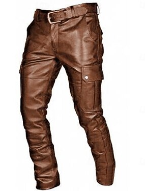 Homme Pantalon Pantalon en cuir Pantalons décontractés Multi poche Couleur unie Moto Vêtement de rue Mode Noir Rouge
