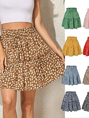Femmes Jupe de vacances Mode Occasionnel Maxi Taille haute Jupes Floral A Volants Imprimé Élastique Quotidien Rue Noir Jaune Rose Claire bleu marine Été