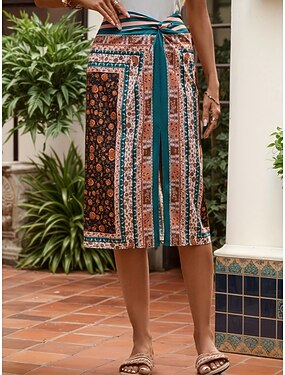 Femmes Jupe de vacances Bohème ancien Occasionnel Mi-long Taille haute Jupes Graphique Fendu Micro-Élastique Quotidien Rue Bleu Été