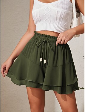 Femmes Jupe de vacances Mode Occasionnel Mini Taille haute Jupes Uni Cordon de serrage A Volants Élastique Quotidien Rue Noir Blanche Vin bleu marine Été