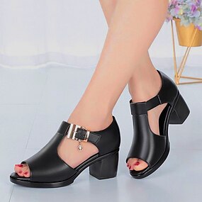 sandales à talon épais et bout ouvert pour femmes - chaussures élégantes en similicuir noir avec boucle décorative pour les fêtes d'été ou les occasions formelles