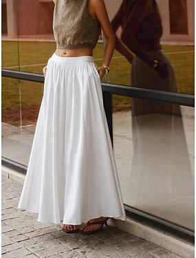 Femmes Jupe de vacances Élégant Mode Tenues de plage Maxi Taille Moyenne Jupes Bleu Roi Vert Kaki Été