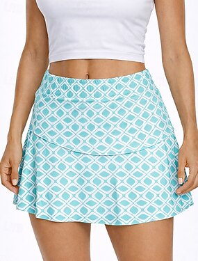 Femmes Géométrique Jupe-short de tennis Sans manches Avec Poches Élastique Évacuation de la transpiration Respirant Tennis Course Fitness Jupe Bas Vert Vêtements de tennis