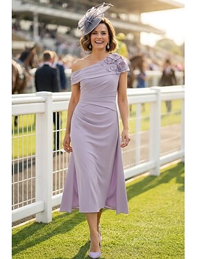 Fourreau Colonne Robe Longueur cheville Robe de Soirée Robe de Cocktail Robe d'invité de mariage Robe de Mère de Mariée Manche Courte Une Épaule Épaules Dénudées Élégant ancien Formel Tissu