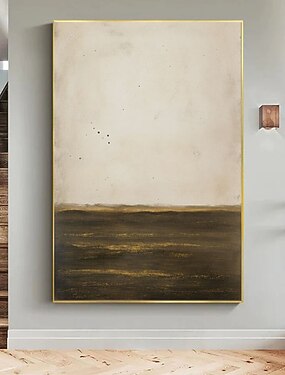 Peinture de paysage minimaliste et apaisante sur toile, grande œuvre d'art contemporaine monochrome, décoration murale verticale, toile marron beige