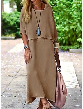 Femmes Jupe Ensembles Manche 3/4 Col ras du cou Couleur Unie Mode Streetwear Occasionnel Quotidien Extérieur Bleu Kaki Été Coupe Ample