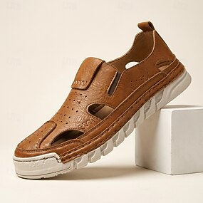 Sandales d'été marron pour hommes en similicuir, chaussures décontractées et respirantes à enfiler pour les vacances, la plage et les activités de plein air