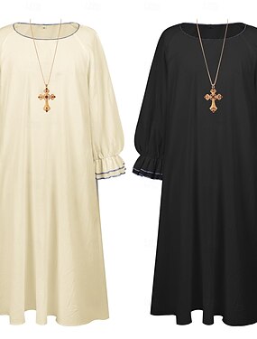 Rétro Vintage Médiéval Renaissance Robe Pendentif croix Nonne Prêtre Déguisement Homme Femmes Religieux Halloween Carnaval Performance LARP Foire de la Renaissance Adultes Justaucorps / combinaison