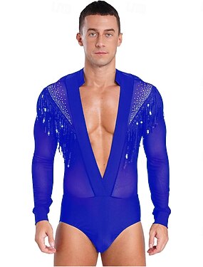 Body en maille transparente pour homme, justaucorps de danse latine, tango, col en V profond, costume de patinage artistique