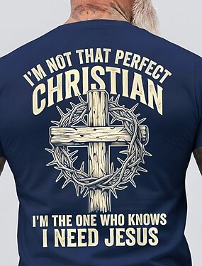 T-shirt homme « Je ne suis pas un chrétien parfait, je sais juste que j'ai besoin de Jésus » - Motif croix, couronne et épines - Foi religieuse - Style classique - Vêtements de tous les jours -