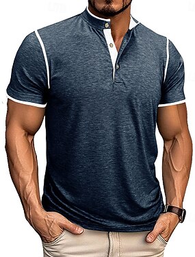 Homme T-shirt Chemise Henley Manche Courte Col montant Été Printemps Couleur Unie Streetwear Élégant Occasionnel Patchwork Boutons Occasionnel Quotidien Extérieur Bleu Blanche Noir T-shirt haut de