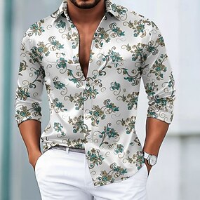 Homme Imprimé Floral Fleurs Chemise Chemise en satin Chemise habillée manche longue Vintage Rétro Vacances Tenue Quotidienne Été Printemps Automne Col Rabattu Impression 3D Chemises boutonnées Noir