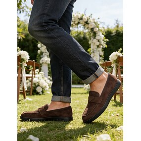 Chaussures homme en cuir fauve à enfiler avec détails noirs, chaussures de mariage à la fois décontractées et élégantes, idéales pour les invités et le marié.