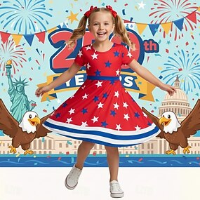 FILLE 3D Graphique Etoiles Robe Manche Courte Impression 3D Été Printemps Quotidien Vacances Soirée Mignon Basique Occasionnel Enfants 4-12 ans Robe Décontractée Robe trapèze Mi-long Coupe régulière