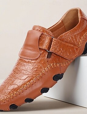 Mocassins mocassins en similicuir texturé marron pour hommes avec conception à bride à enfiler et semelle flexible, chaussures décontractées confortables faites à la main pour la conduite et les voyages