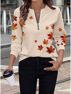 Femmes Sweatshirt Pull Sweats zippés Fermeture éclair Imprimé Fleuri Graphique Mode Occasionnel manche longue Col ras du cou Hauts Réguliers Rue Tenue Quotidienne Kaki Automne Hiver