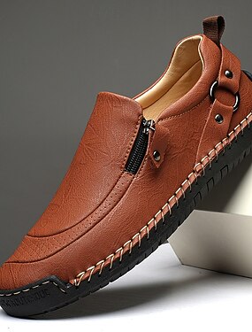 Mocassins marron pour homme, confortables et faciles à enfiler, cousus main, avec fermeture éclair latérale. Idéaux pour un usage quotidien, les voyages, la conduite, le bureau, les loisirs en extérieur et un style décontracté chic.
