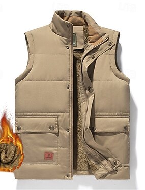 Homme Gilet matelassé Quotidien Occasionnel Automne & Hiver Avec Poches Polyester Confortable Couleur Unie Fermeture éclair Col montant Noir Kaki Vert Véronèse Bleu de minuit Gilet