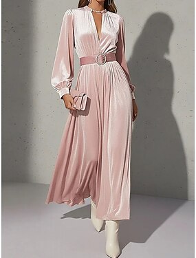 Femmes Robe Midi Robe en Velours Robe Vintage Robe de Soirée Robe de Cocktail Élégant Mode Moderne Soirée Occasion Spéciale Coupe régulière Uni manche longue Col en V Rose Claire Été Printemps Automne