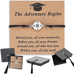 Bracelet boussole de fin d'études pour la promotion 2026 – cadeau inspirant pour elle, lui, lycéen, étudiant, diplômé de 3e, en acier inoxydable avec carte personnalisée &boîte de chapeau de