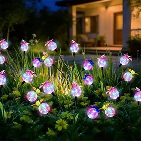 Lampe solaire de jardin en forme de papillon, boule lumineuse oscillante qui se balance au gré du vent, éclairage décoratif RGB pour cour, terrasse et allée (1 pièce)