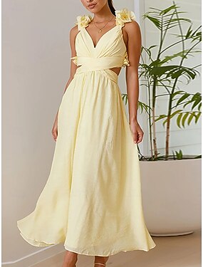 Femmes Robe Midi Robe de Soirée Robe de Cocktail Mousseline de Soie Élégant Mode Moderne Soirée Mariage Occasion Spéciale Coupe régulière Uni Sans manches Col en V Bleu Rouge Violet Abricot Ét
