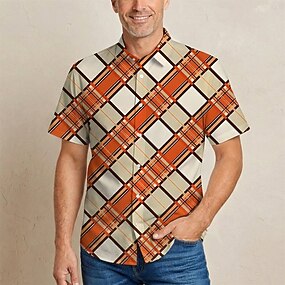 Homme Géométrique Grille / Carreaux Chemise Chemise Boutonnée Manche Courte Mode Décontractée Extérieur Vacances Vêtements de rue Été Printemps Col Rabattu Impression 3D chemises à col Noir Rose