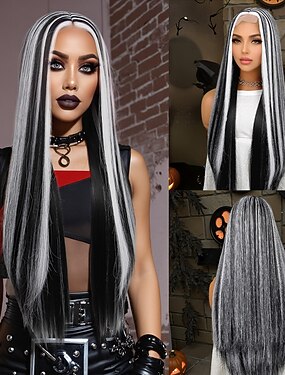 Perruque en dentelle synthétique Lisse Style 30 pouce Multicolore Raie au milieu partie U Perruque Femmes Perruque Noir et blanc
