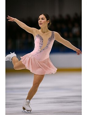 Robe de patinage artistique Femmes Fille Patinage Robe Rose Patchwork Trou de pouce Maille Spandex Haute Élasticité Entraînement Compétition Tenue de Patinage Classique cristal pailleté manche longue