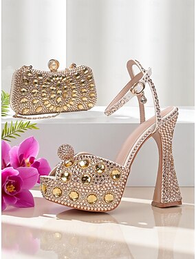 Sandales à talons hauts et plateformes en strass pour femmes avec pochette assortie - Chaussures habillées scintillantes pour cocktails, mariages et événements élégants