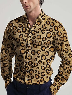 Rétro Vintage Années 1970 Chemise Chemise Aloha Manches longues Hippie Léopard Déguisement Homme Mascarade Festival de Musique Soirée Tenue quotidienne Adulte Chemise