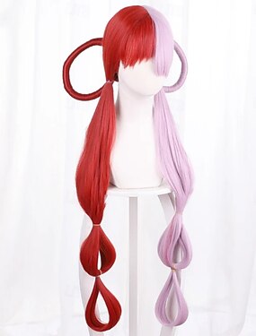 Perruque Synthétique Uniformes Costumes de carrière Princesse Bouclé Ondulé Partie médiane Coupe Dégradée Fabriqué à la machine Perruque 24 pouces Rose + Rouge Cheveux Synthétiques Femme Cosplay
