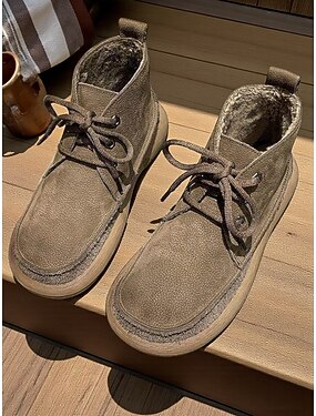 Bottines en daim doublées de polaire pour femmes - Chaussures décontractées d'hiver à lacets confortables pour l'extérieur et le quotidien