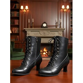 Bottes de sorcière noires à lacets pour femmes avec fermeture éclair et détails cloutés, design à talon épais d'inspiration vintage des années 1920, parfaites pour les fêtes, les tenues de soirée et