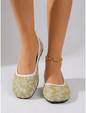 Ballerines fleuries vert clair pour femme – chaussures légères et faciles à enfiler, en tissu respirant, idéales pour les voyages d'été, les garden-parties et les tenues décontractées. &tenues