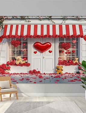 Saint Valentin tapisserie Bannières Couverture Rose Amour Cœur Mignon Romantique 3D Soirée Salon Arrière-plans de prise de vue Décoration pour demande en mariage Décoration d'intérieur